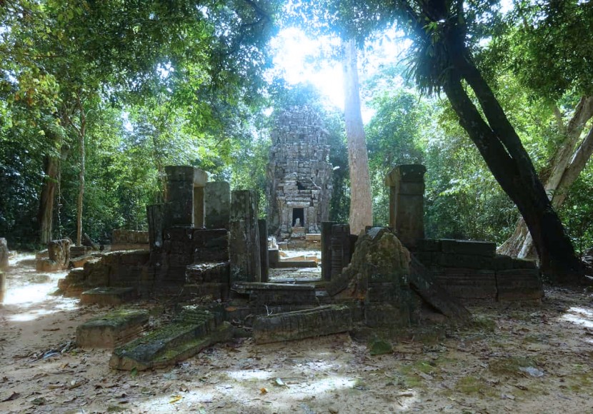 102 hospitals were built throughout the empire under Jayavarman VII. The hospital itself was probably constructed of perishable materials such as wood and bamboo, which has long since disappeared, leaving only the sandstone hospital temple or ´chapel´ for the ages. This temple and the one at Ta Prohm Kel opposite Angkor Wat offer two examples of hospital temples. Constructed of sandstone, this Chapel of the Hospital is in rough condition but some carvings are still visible. A quiet, meditative spot, easily accessible but visited by few tourists.