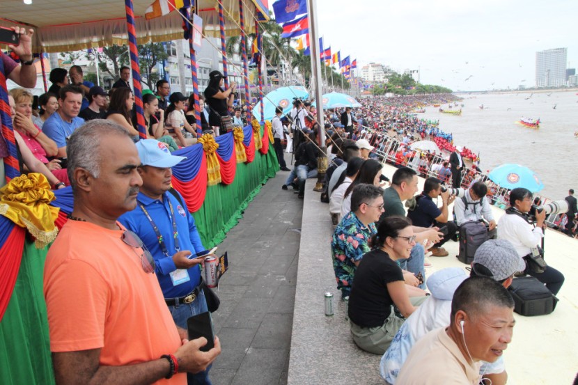 គួរបញ្ជាក់ថា ភ្ញៀវទេសចរអន្តរជាតិ ដែលអញ្ជើញមកទស្សនានៅទីនេះ គឺមួយចំនួន គឺជាអ្នកមកស្នាក់នៅ និងបម្រើការងារនៅក្នុងព្រះរាជាណាចក្រកម្ពុជា និងមួយចំនួនធំគឺជាភ្ញៀវទេសចរណ៍អន្តរជាតិដែលអញ្ជើញមកលេងក្នុងព្រះរាជពិធីបុណ្យអុំទូកនេះតែម្តង ដោយអ្នកខ្លះមក២សប្តាហ៍ ឬ៣សប្តាហ៍ និងអ្នកខ្លះទៀតមក៣ទៅ៤ថ្ងៃ។ អ្វីដែលជាការកត់សម្គាល់ គ្រប់ភ្ញៀវទេសចរ ដែលបានមកទស្សនានៅលើពន្លាទេសចរណ៍ សុទ្ធតែបានបង្ហាញអារម្មណ៍សប្បាយរីករាយយ៉ាងខ្លាំងជាមួយនឹងអនុស្សាវរីយ៍ល្អៗ ប្រកបដោយស្នាមញញឹម និងទទួលបានការស្វាគមន៍យ៉ាងកក់ក្តៅ បដិសណ្ឋារកិច្ចល្អពីមន្រ្តីរាជរដ្ឋាភិបាលកម្ពុជា រួមទាំងប្រជាពលរដ្ឋខ្មែរជាម្ចាស់ផ្ទះផងដែរ៕