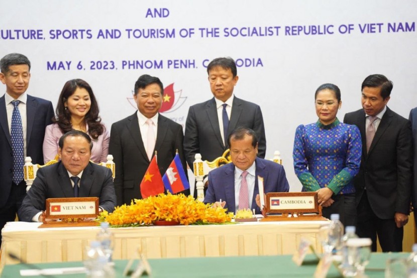 ភ្នំពេញ ថ្ងៃទី០៧ ខែឧសភា ឆ្នាំ២០២៣ -- កម្ពុជា-វៀតណាម បានចុះអនុស្សរណៈនៃការយោគយល់គ្នា ដើម្បីរួមគ្នាជំរុញ ទេសចរណ៍ឆ្ពោះការអភិវឌ្ឍប្រកបដោយចីរភាព បរិយាប័ន្ន និងមានភាពធន់កាន់តែប្រសើរ ក្រោយវិបត្តិកូវីដ១៩ ដោយឯកឧត្តម ថោង ខុន រដ្ឋមន្ត្រីក្រសួងទេសចរណ៍កម្ពុជា និងឯកឧត្តម ង្វៀង វ៉ាន់ហុង រដ្ឋមន្ត្រីក្រសួងវប្បធម៌ កីឡា និងទេសចរណ៍វៀតណាម នៅសណ្ឋាគារ សុខាភ្នំពេញ កាលពីថ្ងៃទី០៦ ខែឧសភា ឆ្នាំ២០២៣ ស្របពេលដែលកម្ពុជាធ្វើជាម្ចាស់ផ្ទះ រៀបចំការប្រកួតកីឡាអាស៊ីអាគ្នេយ៍លើកទី៣២ និងអាស៊ានប៉ារ៉ាហ្គេមលើកទី១២ ឆ្នាំ២០២៣។