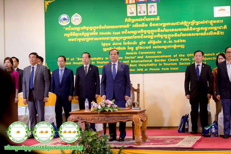 (រាជធានីភ្នំពេញ)៖ ថ្លែងក្នុងពិធីប្រគល់ជ័យលាភីបដិសណ្ឋារកិច្ចល្អក្នុងវិស័យទេសចរណ៍លើកទី១ ឆ្នាំ២០១៨ អមជាមួយការប្រកាសដាក់ឱ្យដំណើរការកម្មវិធីទូរស័ព្ទ (Mobile App) ចលនាប្រឡងប្រណាំងបដិ-សណ្ឋារកិច្ចល្អក្នុងវិស័យទេសចរណ៍ និងច្រកទ្វារអន្តរជាតិ និងការប្រកាសចលនាប្រឡងប្រណាំង “បដិសណ្ឋារ-កិច្ចល្អក្នុងវិស័យទេសចរណ៍លើកទី២ ឆ្នាំ២០១៩” កាលពីថ្ងៃទី២៦ ខែធ្នូ ឆ្នាំ២០១៨ នៅសណ្ឋាគារភ្នំពេញ ឯកឧត្តម ថោង ខុន រដ្ឋមន្ត្រីក្រសួងទេសចរណ៍ បានលើកឡើងថា៖ “កម្ពុជាដាក់ចេញគោលដៅឆ្នាំ២០២៣ ពោពេញទៅដោយបដិសណ្ឋារកិច្ចល្អដើម្បីត្រៀមធ្វើជាម្ចាស់ផ្ទះព្រឹត្តការណ៍ SEA-Game 2023” ក្នុងពិធីនោះឯកឧត្តមរដ្ឋមន្ដ្រីក៏បានប្រគល់ជ័យលាភី “បដិសណ្ឋារកិច្ចល្អក្នុងវិស័យទេសចរណ៍” លើកទី១ ឆ្នាំ២០១៨ ដល់់មូលដ្ឋានអាជីវកម្មទេសចរណ៍ចំនួន ៥៤ (ជ័យលាភីស្នាមញញឹម៣ចំនួន៖ ៣៩, ជ័យលាភីស្នាមញញឹមចំនួន៖ ១២ និងជ័យលាភីស្នា មញ ញឹម១ចំនួន៖ ០៣) ដល់សណ្ឋាគារ និងសេវាស្នាក់នៅចំនួន ២១ទីតាំង, ភោជនីយដ្ឋានចំនួន ២០ទីតាំង, ទីភ្នាក់ងារទេសចរណ៍ចំនួន ០៤ទីតាំង, ហាងស្ប៉ា និងម៉ាស្សាចំនួន ០៤ទីតាំង, មណ្ឌលកម្សាន្ដទេសចរណ៍មនុស្សពេញវ័យចំនួន ០៣ទីតាំង និងរមណីយដ្ឋានទេសចរណ៍ចំនួន ០២ទីតាំង។