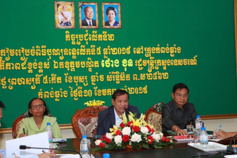 ក្នុងកិច្ចប្រជុំត្រៀមរៀបចំពិធីបុណ្យទន្លេ នាថ្ងៃទី១០ ខែមករា ឆ្នាំ២០១៩ លោក ថោង ខុន រដ្ឋមន្ត្រីក្រសួងទេសចរណ៍ បានជំរុញឱ្យរដ្ឋបាលខេត្តកំពង់ឆ្នាំង ខិតខំបន្តរៀបចំរបៀបរៀបរយ សណ្តាប់ធ្នាប់ អនាម័យសាធារណៈ ពិសេសក្នុងទីក្រុង និងតាមដងទន្លេឱ្យបានល្អ និងខិតខំចាប់យកឱកាសនៃបុណ្យទន្លេនេះ ពង្រីកការយល់ដឺងសាធារណៈក្នុងកិច្ចរក្សាការពារបរិស្ថាន ជីវចម្រុះតាមដងទន្លេ និងខិតខំពង្រីកការផ្សព្វផ្សាយពីគោលដៅទេសចរណ៍ឱ្យបានច្រើន។