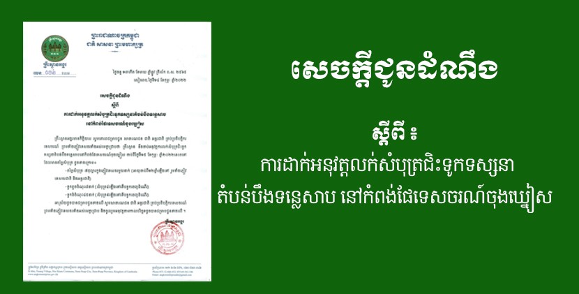សេចក្តីជូនដំណឹងលេខ០១៦ របស់គ្រឹះស្ថានអង្គរ ចុះថ្ងៃទី១៤ ខែកុម្ភៈ ឆ្នាំ២០២២ ស្តីពី ការដាក់អនុវត្តលក់សំបុត្រជិះទូកទស្សនាតំបន់បឹងទន្លេសាបនៅកំពង់ផែទេសចរណ៍ចុងឃ្នៀស