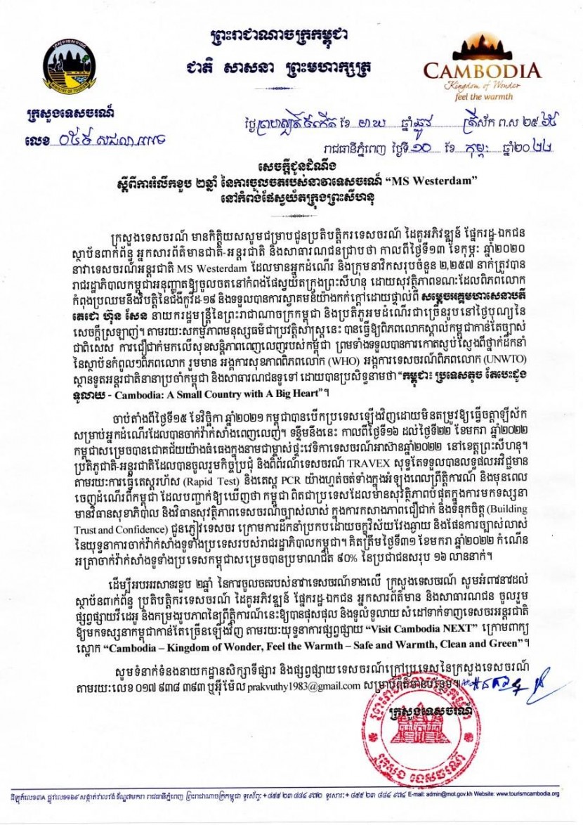 Cambodia - A Small Country with A Big Heart. This year, 13th February 2022, marks the Two Years Commemoration for MS Westerdam came ashore safely at Sihanoukville Autonomous Port, Cambodia on 13th February 2020 amid the global pandemic of COVID-19.