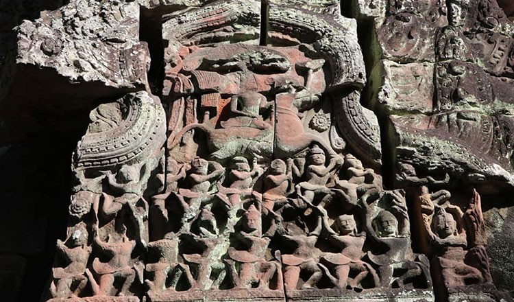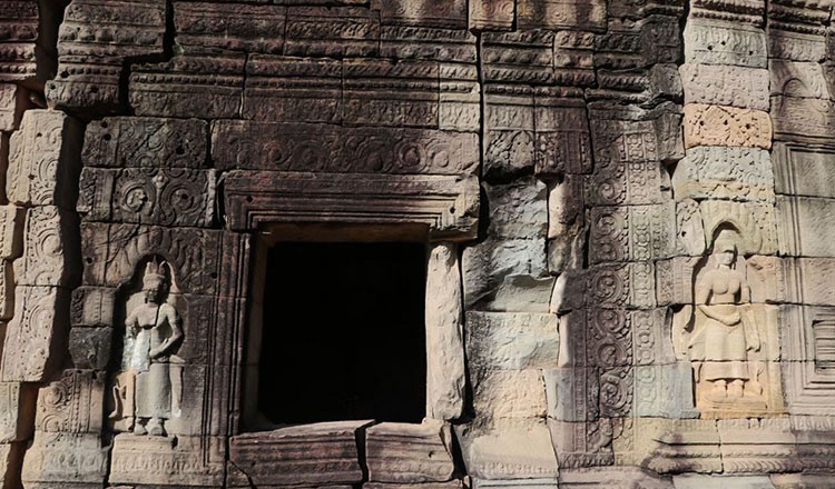 Banteay Thom is a charming temple where the principal appeal is its rural setting in Angkor Park. Tourists can reach it by sandy tracks through paddy and scrubland. The temple is in a rather dilapidated state, but two central towers still survive along with a ruined library, a well-kept eastern gopura, apsaras and tapestries reliefs, and a surrounding covered walkway with some sections of the roof. All pictures by Apsara National Authority.