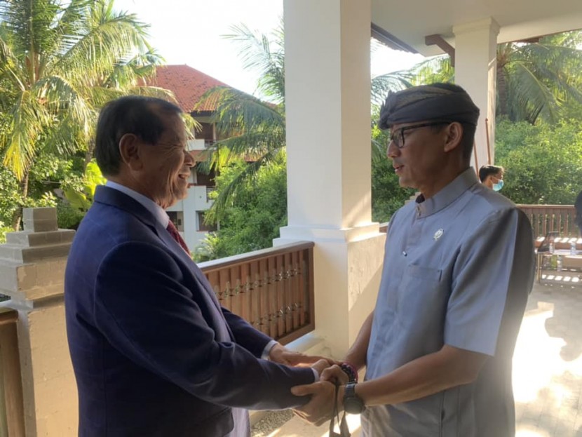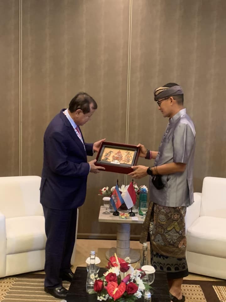 (ឥណ្ឌូណេស៊ី)៖ ឯកឧត្ដម ថោង ខុន រដ្ឋមន្ត្រីក្រសួងទេសចរណ៍កម្ពុជា បានជួបពិភាក្សាទ្វេភាគីជាមួយលោក Sandiaga Salahudin Uno រដ្ឋមន្ត្រីទេសចរណ៍និងសេដ្ឋកិច្ចច្នៃប្រឌិតឥណ្ឌូណេស៊ី។