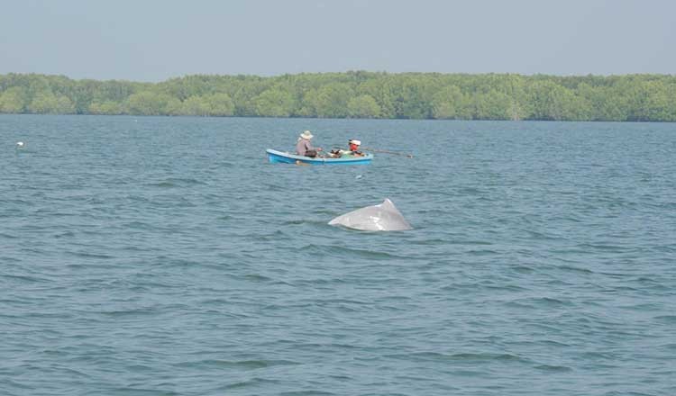 Marine dolphins are usually spotted swimming in the waterways of Peam Krasop Wildlife Sanctuary in Koh Kong province.