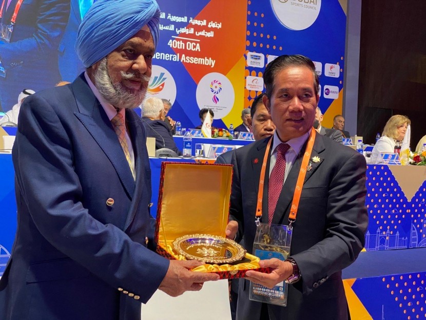 សូមជំរាបជូនថា ដោយបានទទួលការអនុញ្ញាត្តិដ៏ខ្ពង់ខ្ពស់ពីសម្តេចតេជោនាយករដ្ឋមន្ត្រី ប្រមុខរាជរដ្ឋាភិបាលកម្ពុជា ឯកឧត្ដម ថោង ខុន និង ឯកឧត្ដម ឃួងស្រេង បានដីកានាំប្រតិភូមួយរួមមាន ឯកឧត្ដមអគ្គនាយកកីឡា អ៊ុក សិទ្ធជាតិ ឯកឧត្ដម វ៉ាត់ចំរើន អគ្គលេខាធិការ NOCC ទៅចូលរូម មហាសន្និបាតក្រុប្រិក្សាកីឡាអាស៊ីលើកទី៤០ នៅទីក្រុង ឌូបៃ និងដើម្បីចុះហត្ថលេខា ដើម្បីទទួលសិទ្ធធ្វើជាម្ចាស់ផ្ទះ ព្រិត្តិការណ៍ កីឡា យុវជនអូឡាំពិកអាសុីលើកទី ៥ ឆ្នាំ២០២៩ នៅរាជធានីភ្នំពេញ។
