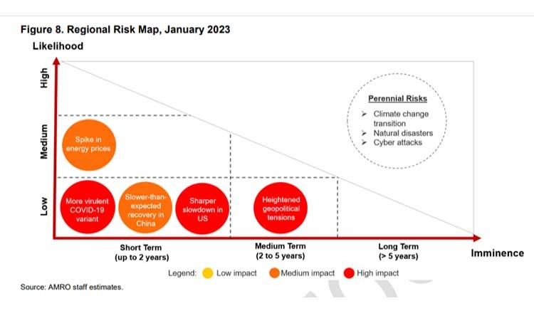 “The weakening global environment has taken the wind out of the sails of the region’s external trade momentum. The drag on economic activity from aggressive monetary policy tightening in the United States and euro area will be felt more fully this year, translating to softer export orders for the ASEAN+3,” the agency noted.