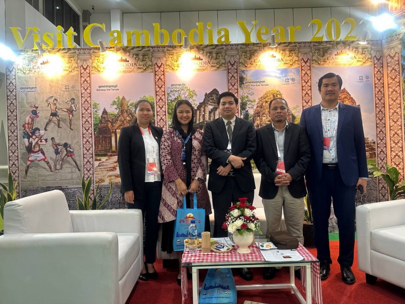(ទីក្រុង Yogyakarta ប្រទេសឥណ្ឌូនេស៊ី)៖ ឯកឧត្តម កាទើ មហាំម៉ាត់ ណោសស្រ៊ី អនុរដ្ឋលេខាធិការ និងជាតំណាងដ៏ខ្ពង់ខ្ពស់របស់ ឯកឧត្តមបណ្ឌិត ថោង ខុន រដ្ឋមន្ត្រីនៃក្រសួងទេសចរណ៍កម្ពុជាបានដឹកនាំប្រតិភូក្រសួងទេសចរណ៍ និងក្រុមហ៊ុនឯកជនចំនួន ៥ រួមមាន ហ្វាមហៅស៍ រីស្សត និងស្ប៉ា សណ្ឋាគារ និងរមណីយដ្ឋាន សុខា ក្រុមហ៊ុន Satguru Travel & Tours Co,. Ltd Cambodia ក្រុមហ៊ុន Younes Tourism និងក្រុមហ៊ុន AL BARAKAH TRAVEL & TOUR Co,. Ltd ចូលរួមពិព័រណ៍ TRAVEX 2023 ក្នុងឱកាសវេទិកាទេសចរណ៍អាស៊ានឆ្នាំ២០២៣ នៅទីក្រុង Yogyakarta ប្រទេសឥណ្ឌូនេស៊ី ដែលប្រព្រឹត្តទៅចាប់ពីថ្ងៃទី៣ ដល់ថ្ងៃទី៥ ខែកុម្ភៈ ឆ្នាំ២០២៣ ដើម្បីផ្សព្វផ្សាយសក្តានុពលវិស័យទេសចរណ៍កម្ពុជា និងជំរុញការលក់កញ្ចប់ទស្សនកិច្ចទេសចរណ៍ជាមួយប្រទេសឥណ្ឌូនេស៊ី ប្រទេសក្នុងតំបន់ និងពិភពលោក។