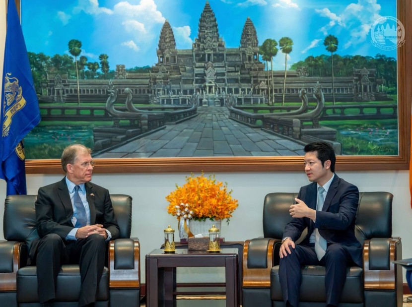 His Excellency SOK Soken, Minister of Tourism, received a courtesy call from His Excellency W. Patrick Murphy, Ambassador Extraordinary and Plenipotentiary of the United States of America to the Kingdom of Cambodia. They discussed ways to enhance partnership between Cambodia and the United States, particularly in stimulating the flow of tourists and exploring opportunities to strengthen tourism cooperation.