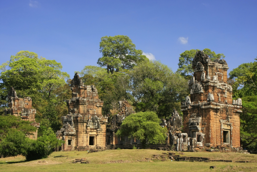 Twelve nearly identical laterite and sandstone towers that stand opposite and parallel to the Terrace of the Elephants. The artistic and architectural style of the towers is somewhat unique, defying easy classification and dating. Construction may have begun under Jayavarman VII, but the towers do not display the classic Bayon-style characteristics. It has been argued that they may be post-Bayon or perhaps much earlier, as early the 11th century. The original function of the towers is a matter of debate but in the 13th century classic, “Customs of Cambodia,” Chinese emissary to Angkor, Zhou Daguan, gives a romantic but dubious firsthand account of their function. He wrote that the towers were used to settle legal disputes and matters of criminal justice. The belligerent parties were kept in the towers for a few days. The one to emerge in ill health was declared the loser, Guilty by divine decree. Best photographed in the late afternoon.