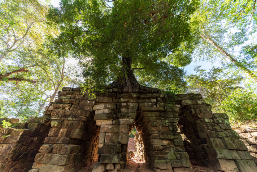 ‘Spean Thma’ literally translates to ‘Stone Bridge’. Remnants of an ancient bridge over the Siem Reap River. Reconstructed several times over the centuries. As it currently stands the bridge is of post-Angkorian construction, employing carved stone from earlier temples. It sits just to the side of the river, indicating how much the course of the river has shifted over the years, possibly in part due to the obstruction and sediment build up caused by the bridge. You will pass by it on your way between Angkor Thom and Ta Keo. It’s just a couple of feet off the road.