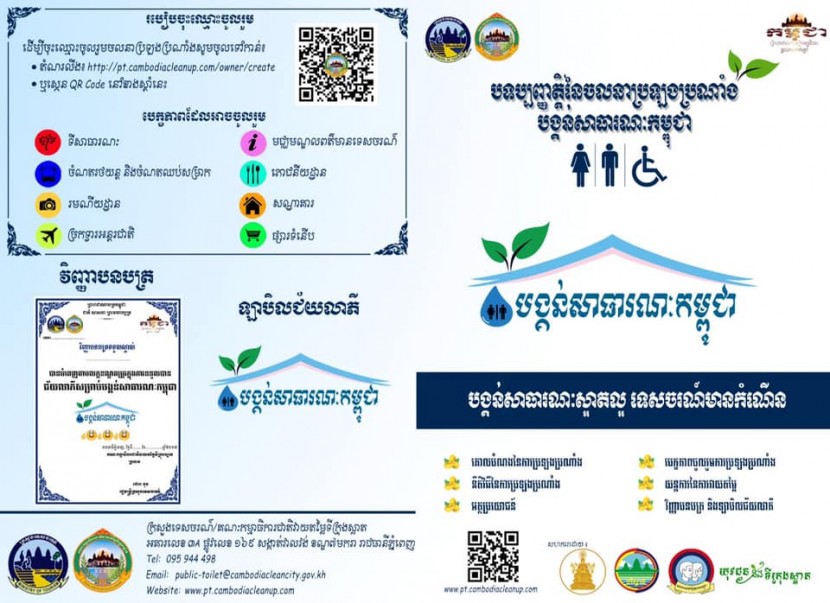 ដើម្បីត្រៀមលក្ខណៈសម្បត្តិទទួលជ័លលាភីចលនាប្រឡងប្រណាំងបង្គន់សាធារណៈកម្ពុជា លើកទី១ ដែលនឹងព្រឹត្តទៅនាថ្ងៃទី២៧ ខែកុម្ភៈ ឆ្នាំ២០១៩ ក្រោមអធិបតីភាពដ៏ខ្ពង់ខ្ពស់បំផុតរបស់សម្ដេចអគ្គមហាសេនាបតីតេជោ ហ៊ុន សែន នាយករដ្ឋមន្ដ្រីនៃព្រះ រាជា ណាចក្រកម្ពុជា គណៈកម្មាធិការជាតិវាយតម្លៃទីក្រុងស្អាត សូមស្នេីក្រុមការងារវាយតម្លៃទីក្រុងស្អាតរាជធានី-ខេត្ត លោក លោកស្រី អភិបាលក្រុង/ខណ្ឌ អាចជ្រើសរើសបង្គន់សាធារណៈណាដែលមានលក្ខណៈ សម្បត្តិគ្រប់គ្រាន់ចូលរួមក្នុងចលនា ប្រឡងប្រណាំងបង្គន់សាធារណៈកម្ពុជា លើកទី១ ព្រមទាំងភ្ជាប់មកជាមួយនៅ៖