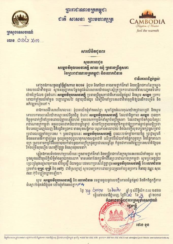​ជូនពរ​សម្តេច​វិបុល​សេនា​ភក្តី សាយ ឈុំ ប្រធានព្រឹទ្ធសភា ក្នុង​ឱកាស​បុណ្យចូលឆ្នាំ​ថ្មី ឆ្នាំ​សកល​២០១៩​។​