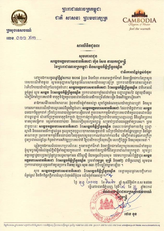 ឯកឧត្តម​បណ្ឌិត ថោង ខុន រដ្ឋមន្ត្រី​ក្រសួង​ទេសចរណ៍ និង​លោកជំទាវ ព្រមទាំង​ថ្នាក់ដឹកនាំ និង​មន្ត្រីរាជការ​ទាំងអស់​