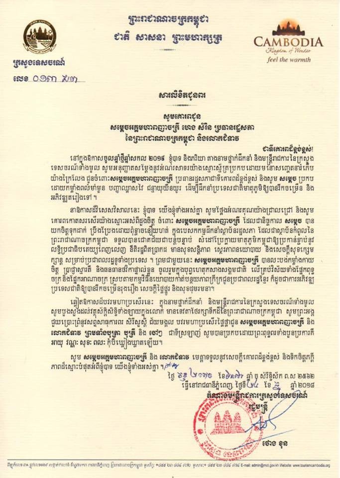 This website, Tourismcambodia.org, the official website of Ministry of Cambodia of the Kingdom of Cambodia, is designed and maintained collaboratively by RED DOT (Cambodia) Co., Ltd and Cybernetics Ltd a full service branding and advertising agency in Cambodia. While efforts are made to ensure that all the information hereto are good, accurate and up to date, by visiting the website Tourismcambodia.org, viewing, accessing or otherwise using any of the services or information created, collected, compiled or submitted to Tourismcambodia.org, you agree to be bound by the our Terms and Conditions of Use, (Click here). If you do not want to be bound by our Terms, your only option is not to visit, view or otherwise use the services of Tourismcambodia.org. You understand, agree and acknowledge that these Terms constitute a legally binding agreement between you and Tourismcambodia.org and that your use of Tourismcambodia.org shall indicate your conclusive acceptance of this agreement.
