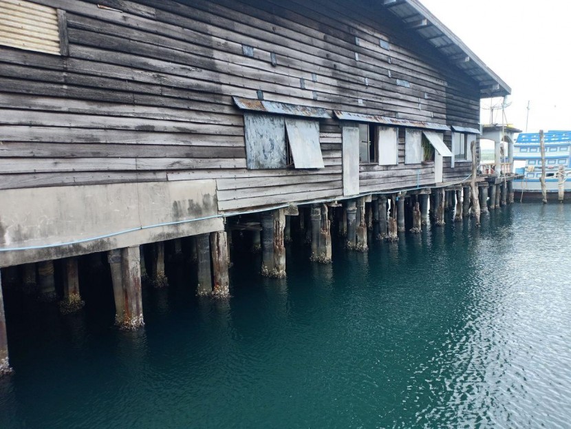 Meng Phalla, a floating homeowner on Koh Sdach, says that the construction they are doing is only repairing the wooden supports to the blue concrete slabs, from the wooden poles under the piles