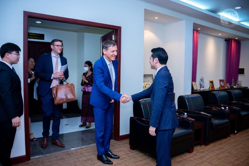 Phnom Penh, October 23, 2023 – His Excellency Mr. SOK Soken, Minister of Tourism, received a courtesy call from His Excellency Mr. Jacques Pellet, the French Ambassador to Cambodia and Mr. Emmanuel Dollfus, Deputy Director of the French Agency for Development in Cambodia to discuss the ongoing cooperation on tourism development and the progress of the project to establish tourism vocational schools in Phnom Penh and Sihanoukville.