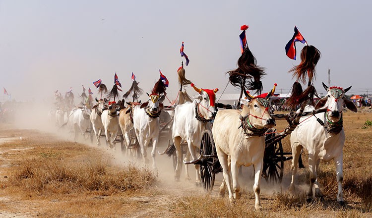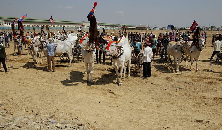Oxcart races in Kampong Speu province’s Samraong Tong district on Sunday attracted more than a thousand spectators. Event organisers said that in addition to preserving the ancient custom, this annual celebration made the community happy in the run-up to the Khmer New Year, which falls on April 13 to 16. This year’s race saw 50 pairs of oxen compete, up from 38 pairs the year before. The event was to promote and maintain the history of oxcart racing. All pictures by Heng Chivoan.