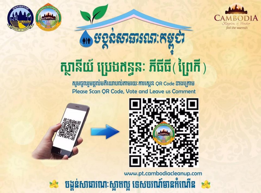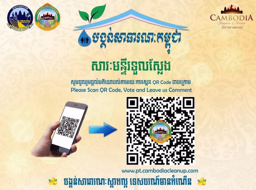 2. Or by scan QR Code as shown on the sticker on the public toilets that pass thru the 1st finale candidates of the Cambodia public toilets contest.