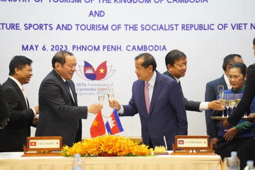 ភ្នំពេញ ថ្ងៃទី០៧ ខែឧសភា ឆ្នាំ២០២៣ -- កម្ពុជា-វៀតណាម បានចុះអនុស្សរណៈនៃការយោគយល់គ្នា ដើម្បីរួមគ្នាជំរុញ ទេសចរណ៍ឆ្ពោះការអភិវឌ្ឍប្រកបដោយចីរភាព បរិយាប័ន្ន និងមានភាពធន់កាន់តែប្រសើរ ក្រោយវិបត្តិកូវីដ១៩ ដោយឯកឧត្តម ថោង ខុន រដ្ឋមន្ត្រីក្រសួងទេសចរណ៍កម្ពុជា និងឯកឧត្តម ង្វៀង វ៉ាន់ហុង រដ្ឋមន្ត្រីក្រសួងវប្បធម៌ កីឡា និងទេសចរណ៍វៀតណាម នៅសណ្ឋាគារ សុខាភ្នំពេញ កាលពីថ្ងៃទី០៦ ខែឧសភា ឆ្នាំ២០២៣ ស្របពេលដែលកម្ពុជាធ្វើជាម្ចាស់ផ្ទះ រៀបចំការប្រកួតកីឡាអាស៊ីអាគ្នេយ៍លើកទី៣២ និងអាស៊ានប៉ារ៉ាហ្គេមលើកទី១២ ឆ្នាំ២០២៣។