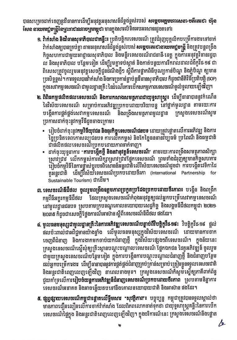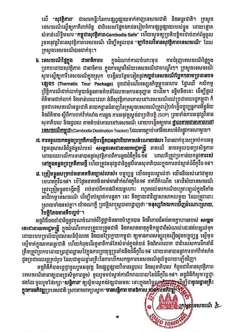 ខាងក្រោមនេះជាសេចក្ដីប្រកាសព័ត៌មានរបស់ក្រសួងទេសចរណ៍៖