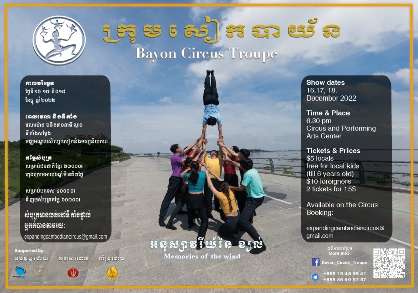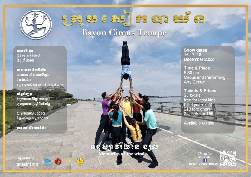 We are celebrating the season of fall with the "Memories of Wind" show which will be performed by professional khmer circus artist of national school of fine arts. Your participation is playing an important role in order to support the life of khmer circus culture.