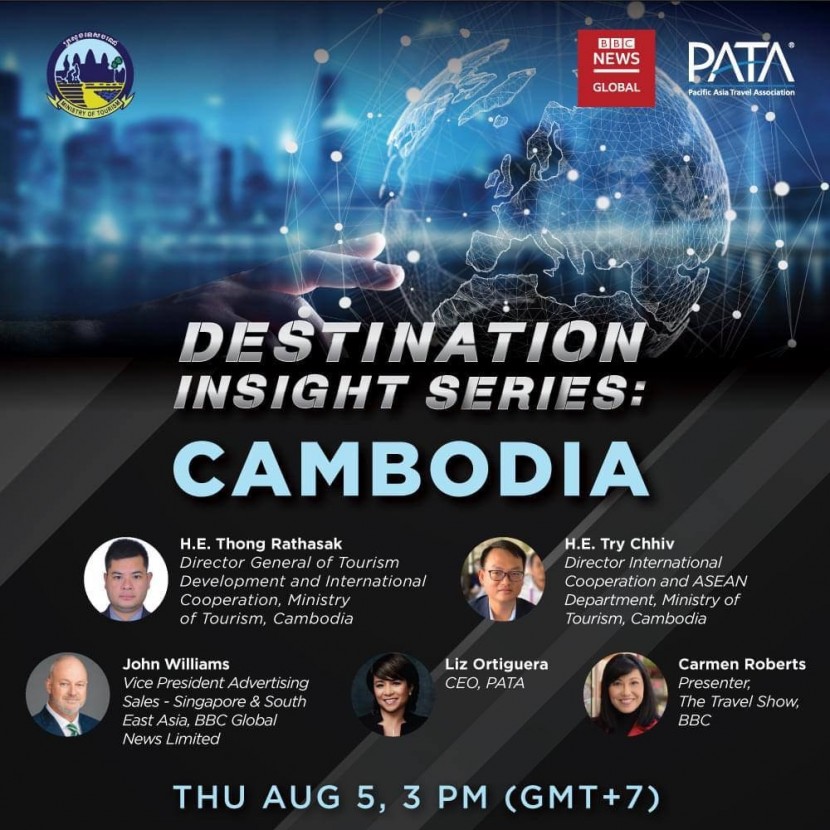 នាថ្ងៃទី០៥ ខែសីហា ឆ្នាំ២០២១ ៖ ឯកឧត្តម ថោង រដ្ឋសក្តិ អគ្គនាយកអភិវឌ្ឍន៍ទេសចរណ៍ និងសហប្រតិបត្តិការអន្តរជាតិ និង ឯកឧត្តម ទ្រី ឈីវ ប្រធាននាយកដ្ឋានសហប្រតិបត្តិការអន្តរជាតិ និងអាស៊ាន នឹងចូលរួមផ្ដល់កិច្ចសម្ភាសន៍ក្នុងកម្មវិធី«Destination Insights Series» របស់សមាគមទេសចរណ៍អាស៊ីប៉ាស៊ីហ្វិច (PATA) សហការជាមួយនឹងបណ្ដាញសារព័ត៌មាន BBC ដែលកម្មវិធីនេះផ្ដោតសំខាន់ទៅលើការនិន្នាការបច្ចុប្បន្នក្នុងអំឡុងវិបត្តិកូវីដ-១៩ និងការស្ដារវិស័យទេសចរណ៍ឡើងវិញ