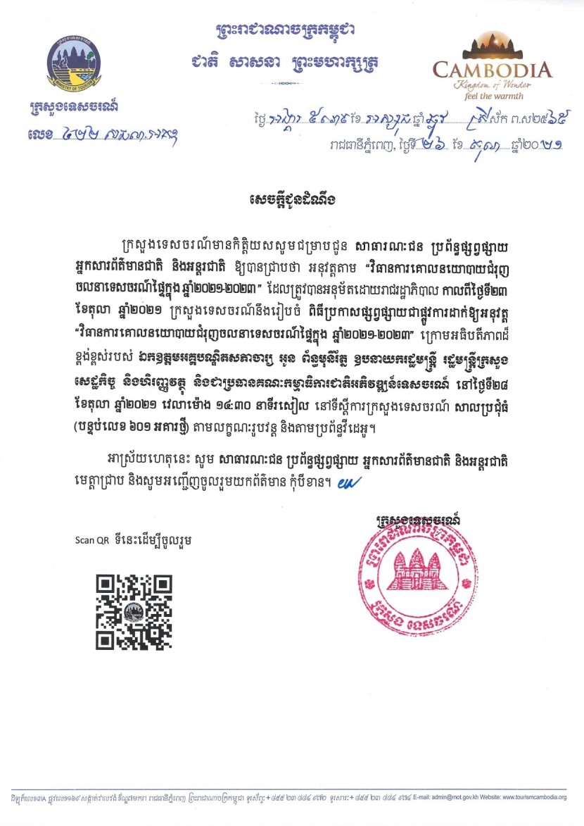 ខាងក្រោមនេះជាសេចក្ដីជូនដំណឹងរបស់ក្រសួងទេសចរណ៍៖