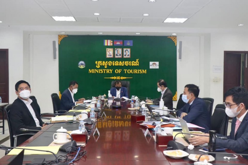 នាព្រឹកថ្ងៃទី១៣ ខែតុលា ឆ្នាំ២០២១ ឯកឧត្តម ថោង ខុន រដ្ឋមន្រ្តីក្រសួងទេសចរណ៍ បានដឹកនាំ ថ្នាក់ដឹកនាំ និងមន្ត្រីជំនាញនៃក្រសួងទេសចរណ៍ ចូលរួមប្រជុំឆ្លងលើសេចក្តីព្រាងឯកសារចំនួន០២