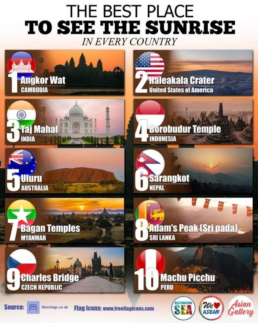 ប្រាសាទអង្គរវត្តជាប់ចំណាត់ថ្នាក់លេខ១ ក្នុងពិភពលោកដែលជាកន្លែងដ៏ល្អបំផុត សម្រាប់ទស្សនាព្រះអាទិត្យរះ