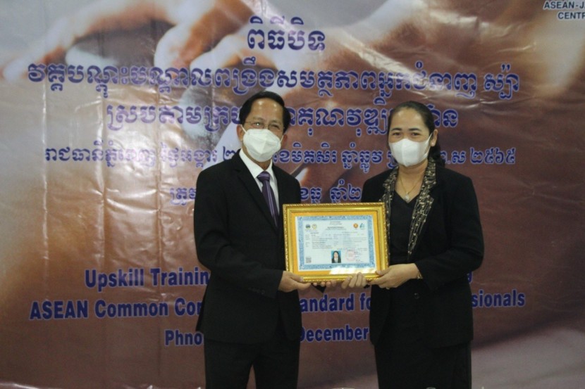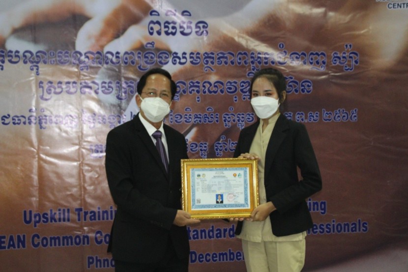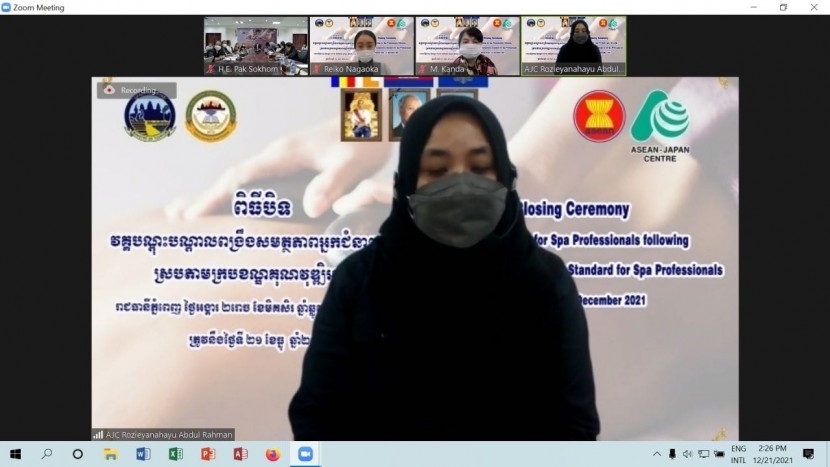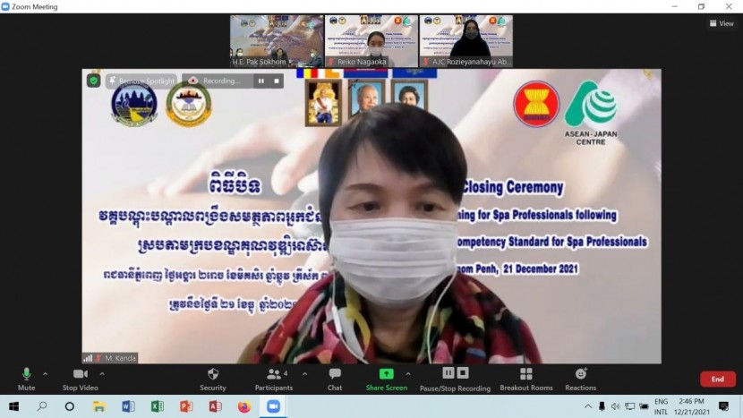 នារសៀលថ្ងៃទី២១ ខែធ្នូ ឆ្នាំ២០២១ លេខាធិការដ្ឋាន នៃគណៈ កម្មាធិការជាតិអ្នកជំនាញទេសចរណ៍សហការជាមួយ មជ្ឈមណ្ឌល អាស៊ាន-ជប៉ុន (AJC) បានរៀបចំពិធីបិទវគ្គបណ្តុះបណ្តាលពង្រឹង សមត្ថភាពអ្នកជំនាញស្ប៉ា ស្របតាមក្របខ័ណ្ឌគុណវុឌ្ឍិអាស៊ាន និង ចែកវិញ្ញាបនប័ត្រជូនបេក្ខជនជ័យលាភី ក្រោមអធិបតីភាព ឯកឧត្តម ប៉ាក់ សុខុម រដ្ឋលេខាធិការ និងជាតំណាងដ៏ខ្ពង់ខ្ពស់របស់ឯកឧត្តម រដ្ឋមន្ត្រីក្រសួងទេសចរណ៍។