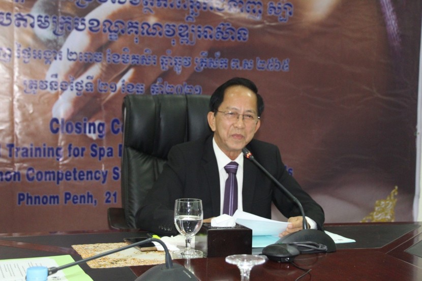 ពិធីបិទវគ្គបណ្តុះបណ្តាលពង្រឹង សមត្ថភាពអ្នកជំនាញស្ប៉ា ស្របតាមក្របខ័ណ្ឌគុណវុឌ្ឍិអាស៊ាន និង ចែកវិញ្ញាបនប័ត្រជូនបេក្ខជនជ័យលាភី ក្រោមអធិបតីភាព ឯកឧត្តម ប៉ាក់ សុខុម រដ្ឋលេខាធិការ និងជាតំណាងដ៏ខ្ពង់ខ្ពស់របស់ឯកឧត្តម រដ្ឋមន្ត្រីក្រសួងទេសចរណ៍