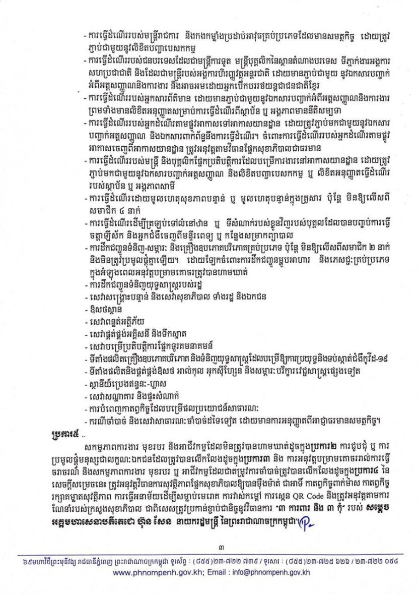 រដ្ឋបាលរាជធានីភ្នំពេញ នៅថ្ងៃទី១១ ខែសីហា ឆ្នាំ២០២១នេះ បានសម្រេចបន្តដាក់វិធានការរដ្ឋបាលរយៈពេល២សប្តាហ៍បន្តទៀត ចាប់ពីថ្ងៃទី ១៣ ដល់ថ្ងៃទី ២៦ ខែសីហា ឆ្នាំ ២០២១