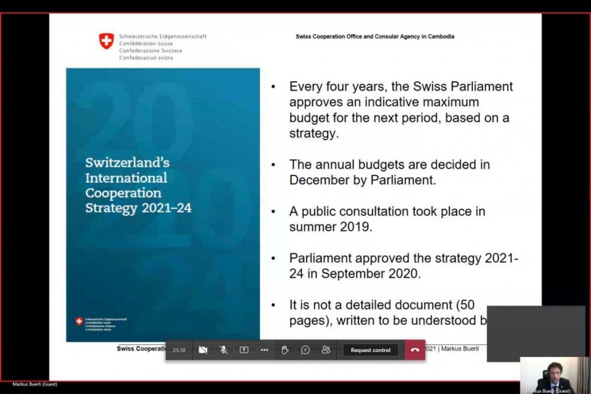 (ភ្នំពេញ) ថ្ងៃទី០៣ ខែមិថុនា ឆ្នាំ២០២១ ឯកឧត្តម នី ផល្លី អនុរដ្ឋលេខាធិការក្រសួងទេសចរណ៍ បានដឹកនាំក្រុមការងារចូលរួមកិច្ចប្រជុំពិគ្រោះយោបល់លើសេចក្តីព្រាងកម្មវិធីសហប្រតិបត្តិការស្វីសក្នុងតំបន់មេគង្គសម្រាប់ឆ្នាំ ២០២២-២០២៥ (Swiss Mekong Regional Cooperation Program 2022-2025) ដែលរៀបចំដោយក្រុមប្រឹក្សាអភិវឌ្ឍន៍កម្ពុជា (CDC) និងទីភ្នាក់ងារស្វីសសម្រាប់ការអភិវឌ្ឍន៍ និងកិច្ចសហប្រតិបត្តិការ (SDC) ដោយទទួលបានលទ្ធផលដូចខាងក្រោម៖