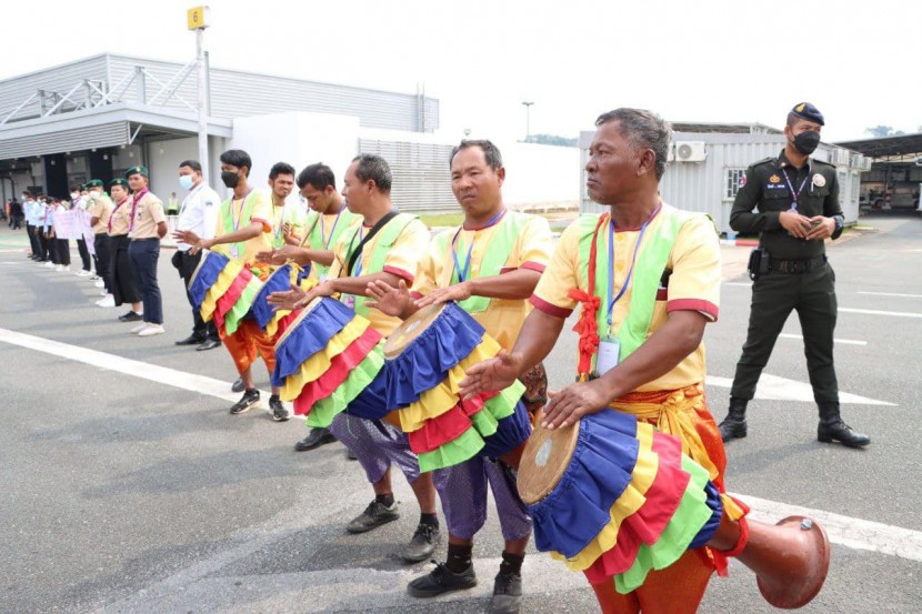 ក្នុងដំណើរចុះចតនៅខេត្តព្រះសីហនុលើកដំបូងនេះដែរ ភ្ញៀវទេសចរចិន និងក្រុមអ្នកបម្រើការលើយន្តហោះ ក៏ទទួលបានការស្វាគមន៍ពីសំណាក់ថ្នាក់ដឹកនាំក្រសួងទេសចរណ៍ រដ្ឋលេខាធិការដ្ឋានអាកាសចរណ៍ស៊ីវិល តំណាងអាជ្ញាធរខេត្តព្រះសីហនុជាដើម ដោយមានរបាំឆៃយ៉ាំសម្រាប់ទទួលបដិសណ្ឋារកិច្ច រួមជាមួយការបំពាក់ក្រមាខ្មែរ និងជូនបាច់ផ្កាផងដែរ។
