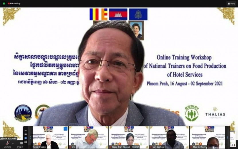 (ភ្នំពេញ)៖ លេខាធិការដ្ឋានគណៈកម្មាធិការជាតិអ្នកជំនាញទេសចរណ៍ នៃក្រសួងទេសចរណ៍ សហការជាមួយអង្គការ ASSIST វិទ្យាស្ថាន William Angliss នៃប្រទេសអូស្រ្តាលី និងក្រុមហ៊ុន Thalias Hospitality Group នាថ្ងៃទី១៦ ខែសីហា ឆ្នាំ២០២១នេះ បានរៀបចំសិក្ខាសាលាបណ្តុះបណ្តាលគ្រូបង្គោលជាតិ ផ្នែកផលិតកម្មម្ហូបអាហារ ដើម្បីអាចធ្វើការបណ្តុះបណ្តាលបន្តដល់យុវជនកម្ពុជាផ្សេងៗទៀត តាមស្តង់ដាអាស៊ាន និងជាការត្រៀមបើកទេសចរណ៍អន្តរជាតិឡើងវិញ បន្ទាប់ពីវិបត្តិកូវីដ-១៩ ថមថយ។