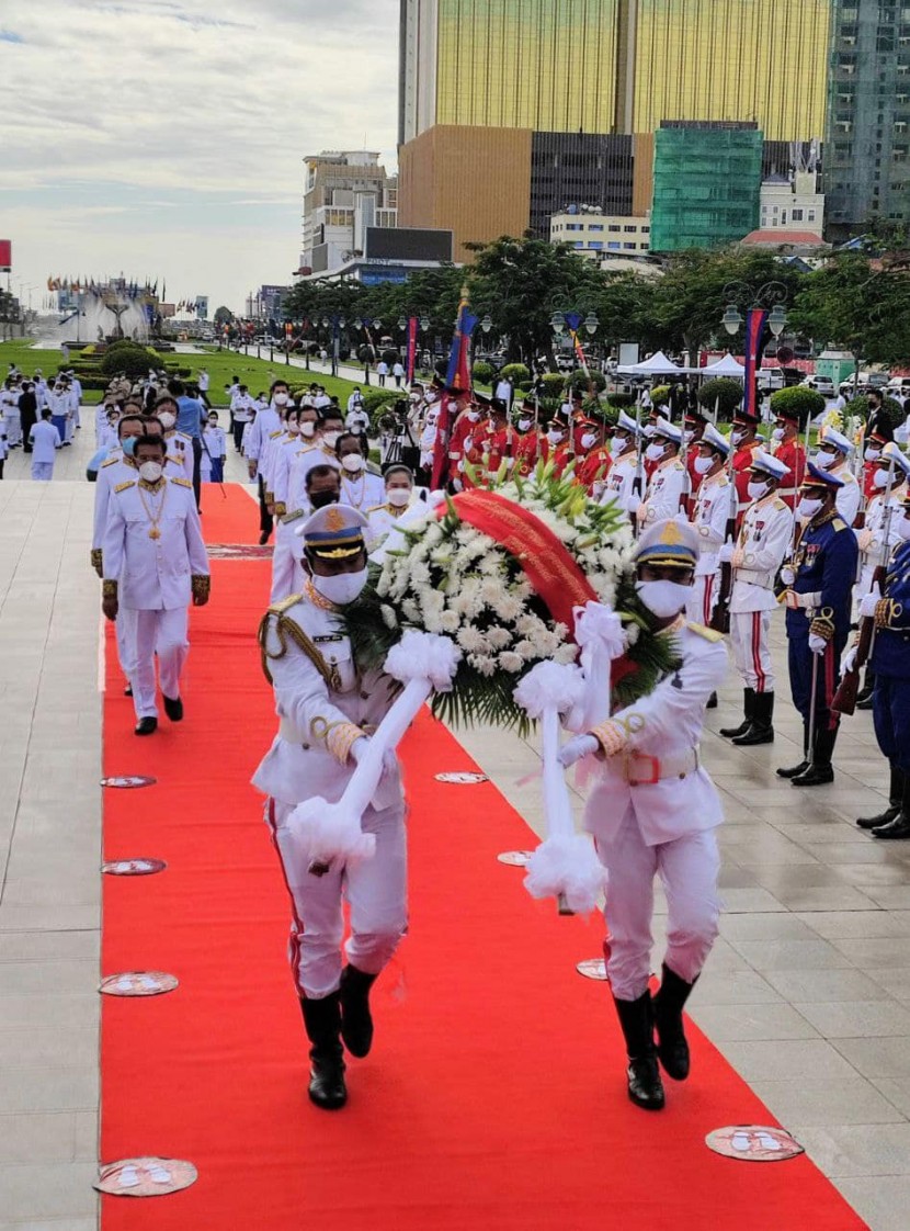 នាព្រឹកថ្ងៃសុក្រ ទី១៥ ខែតុលា ឆ្នាំ២០២១ ឯកឧត្តម ថោង ខុន រដ្ឋមន្ត្រីក្រសួងទេសចរណ៍ បានដឹកនាំគណៈប្រតិភូក្រសួងចំនួន ១៥រូប ចូលរួមថ្វាយកម្រងផ្កា គោរពព្រះវិញ្ញាណក្ខន្ធ ព្រះករុណាព្រះបាទសម្តេច ព្រះនរោត្តម សីហនុ ព្រះមហាវីរក្សត្រ ព្រះវររាជបិតា ឯករាជ្យ បូរណភាពទឹកដី និងឯកភាពជាតិខ្មែរ “ព្រះបរមរតនកោដ្ឋ” គម្រប់ ៩ឆ្នាំ នៅមណ្ឌបសួនច្បារខាងកើតវិមានឯករាជ្យ