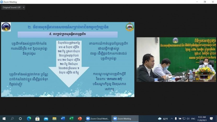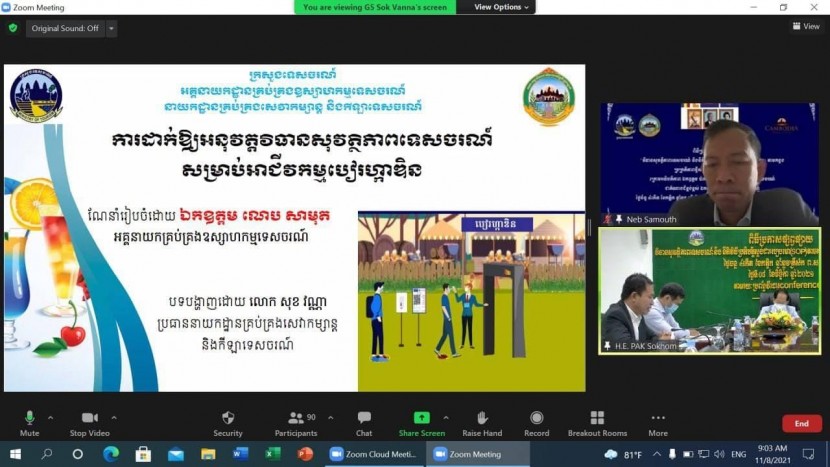 (ភ្នំពេញ)៖ ឯកឧត្ដម ប៉ាក់ សុខុម រដ្ឋលេខាធិការក្រសួងទេសចរណ៍ បានរៀបចំពិធីផ្សព្វផ្សាយនីតិវិធីប្រតិបត្តិស្តង់ដាអប្បបរមា (SOP) តាមគន្លងប្រក្រតីភាពថ្មីសម្រាប់អាជីវកម្មបៀរហ្កាឌិន ដល់មន្ទីរទេសចរណ៍រាជធានី-ខេត្តទាំង២៥ តាមរយៈ Zoom នាថ្ងៃទី០៨ ខែវិច្ឆិកា ឆ្នាំ២០២១នេះ ដើម្បីចូលរួមទប់ស្កាត់ការឆ្លងរាលដាលជំងឺកូវីដ-១៩ និងធានាបាននូវសន្តិសុខ សុវត្ថិភាពភ្ញៀវ និងទីតាំងគោលដៅអាជីវកម្មសុវត្ថិភាព។