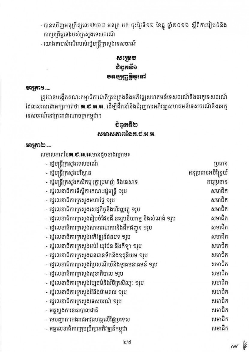 រាជរដ្ឋាភិបាលកម្ពុជាសម្រេចបង្កើតគណៈកម្មាធិការជាតិគ្រប់គ្រង និងអភិវឌ្ឍសហគមន៍ទេសចរណ៍ និងអេកូទេសចរណ៍