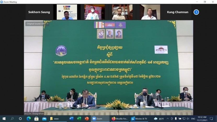 ឯកឧត្ដមរដ្ឋមន្ត្រី ថោង ខុន បានដាក់ចេញអនុសាសន៍ដូចនេះនាព្រឹកថ្ងៃទី១៧ ខែវិច្ឆិកា ឆ្នាំ២០២១នេះ ក្នុងឱកាសដឹកនាំកិច្ចប្រជុំផ្សព្វផ្សាយ «ការទទួលទេសចរអន្តរជាតិ និងអ្នកដំណើរដែលបានចាក់វ៉ាក់សាំងកូវីដ១៩ ពេញលេញចូលក្នុងព្រះរាជាណាចក្រកម្ពុជា» ដោយមានការចូលរួមពីឯកឧត្ដម ហ៊ុន ម៉ានិត ប្រធានអនុគណៈកម្មការ គ្រប់គ្រងច្រកទ្វារចេញ-ចូលប្រទេស និងការធ្វើចត្តាឡីស័ក, ឯកឧត្ដម ទៀ សីហា អភិបាលខេត្តសៀមរាប មន្ត្រីជំនាញក្រសួងសុខាភិបាល រួមទាំងផ្នែកឯកជនក្នុងវិស័យ ទេសចរណ៍ និងផ្នែកពាក់ព័ន្ធមួយចំនួនដោយផ្ទាល់ និងតាមប្រព័ន្ធអនឡាញ នៅសណ្ឋាគារសុខា សៀមរាប ខេត្តសៀមរាប។