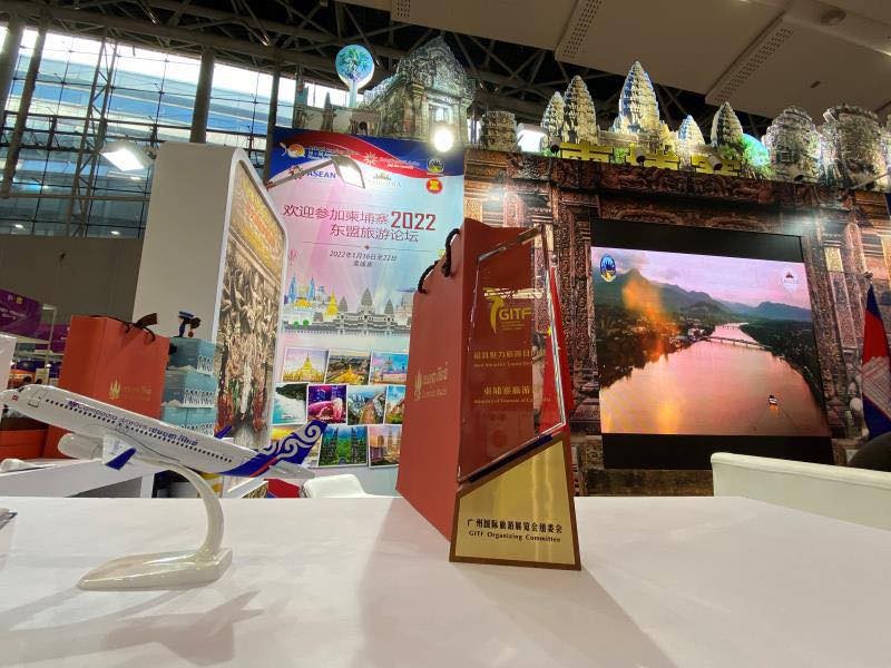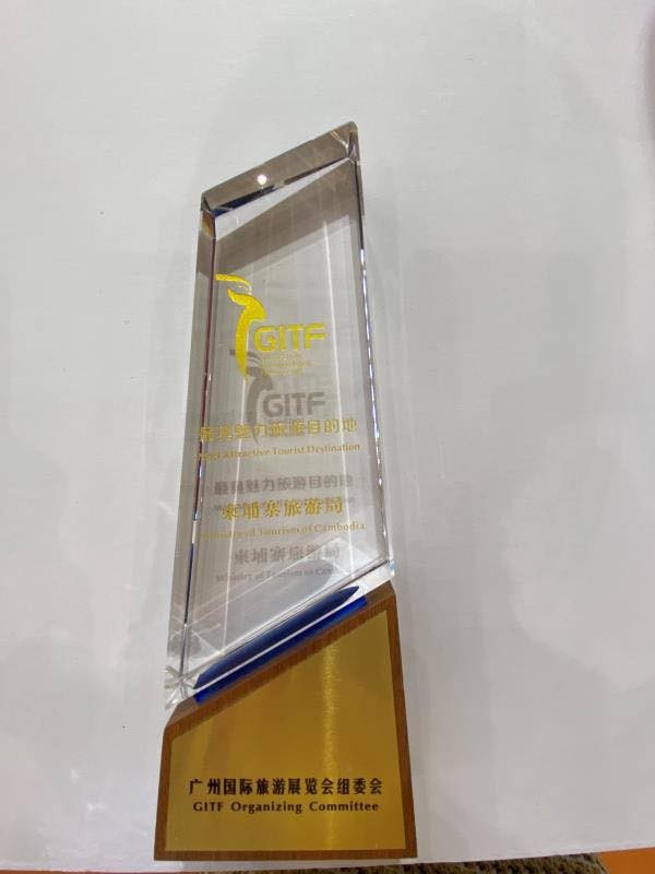 Guangzhou International Travel Fairs 2021 is attended by national and international buyers and sellers, including 500 booths, 500 sellers from 55 countries, 300 local buyers and 30 international media. The first day of the event Cambodia Booth was awarded as "The Best Attraction Tourist Destination", the event is expected to receive more than 20,000 visitors.