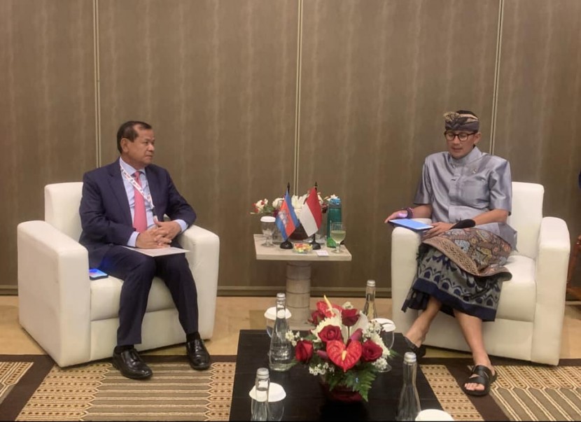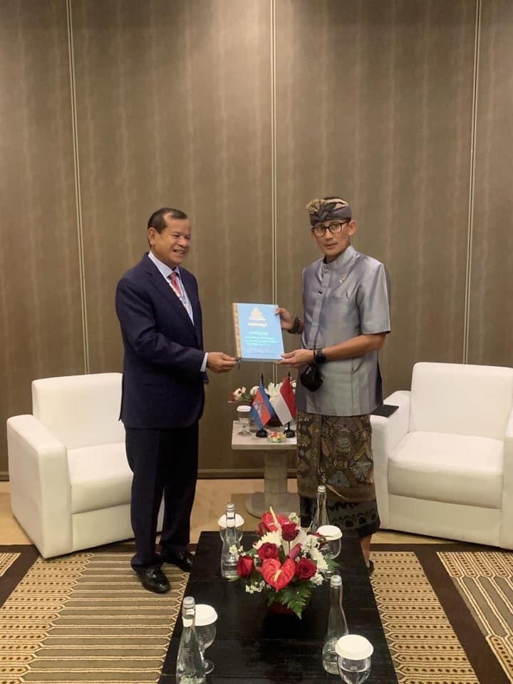 (ឥណ្ឌូណេស៊ី)៖ ឯកឧត្ដម ថោង ខុន រដ្ឋមន្ត្រីក្រសួងទេសចរណ៍កម្ពុជា បានជួបពិភាក្សាទ្វេភាគីជាមួយលោក Sandiaga Salahudin Uno រដ្ឋមន្ត្រីទេសចរណ៍និងសេដ្ឋកិច្ចច្នៃប្រឌិតឥណ្ឌូណេស៊ី។