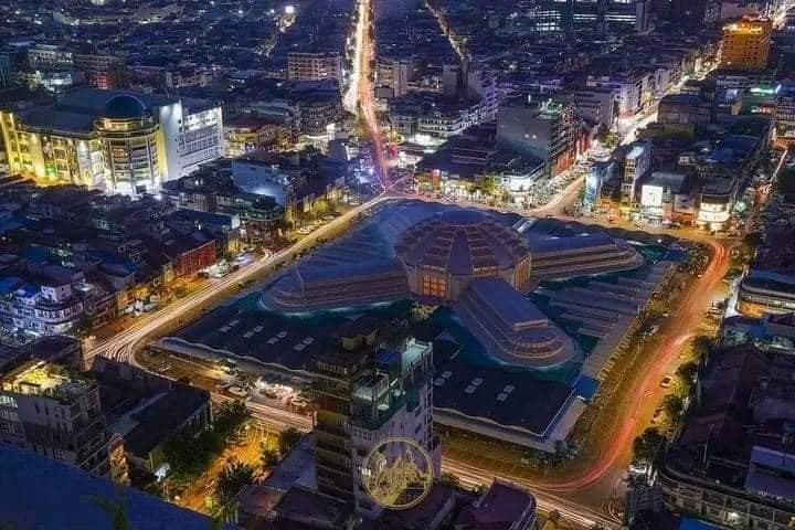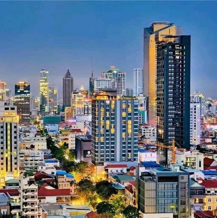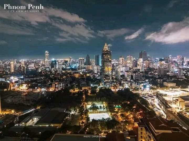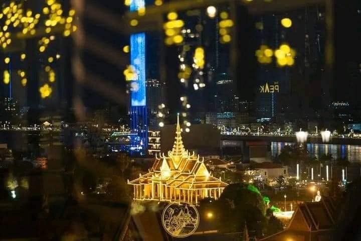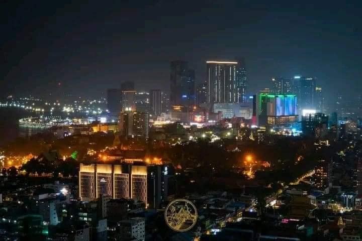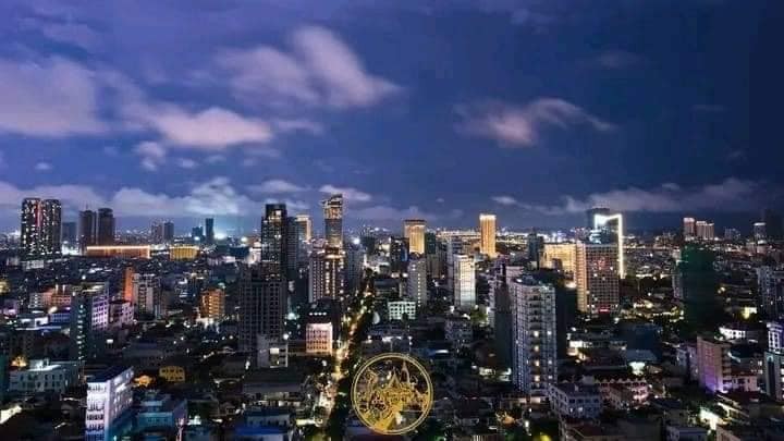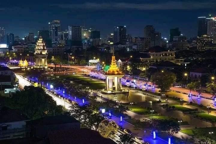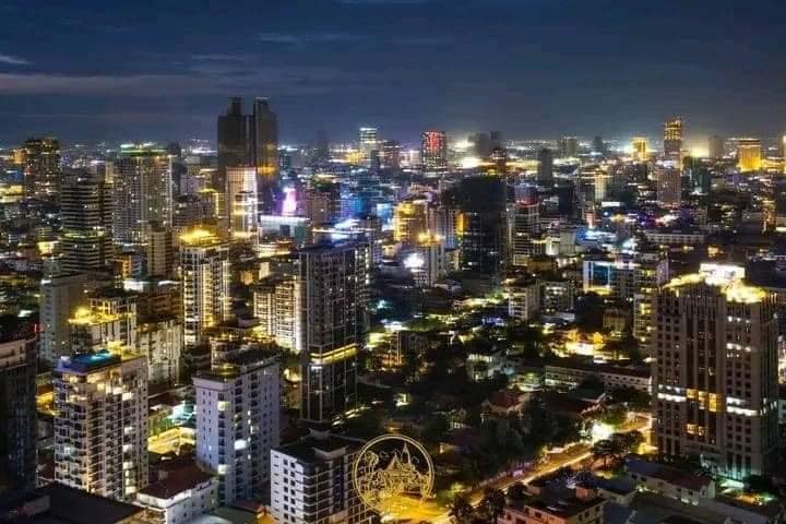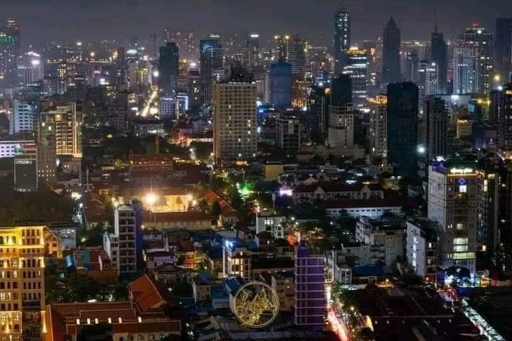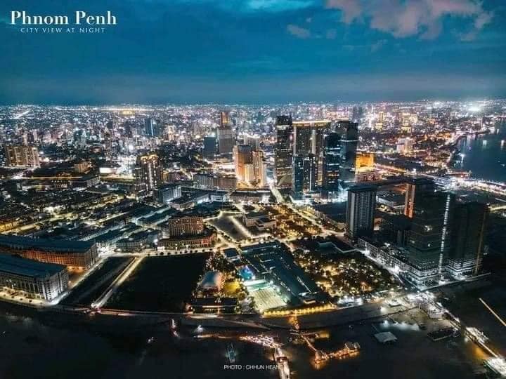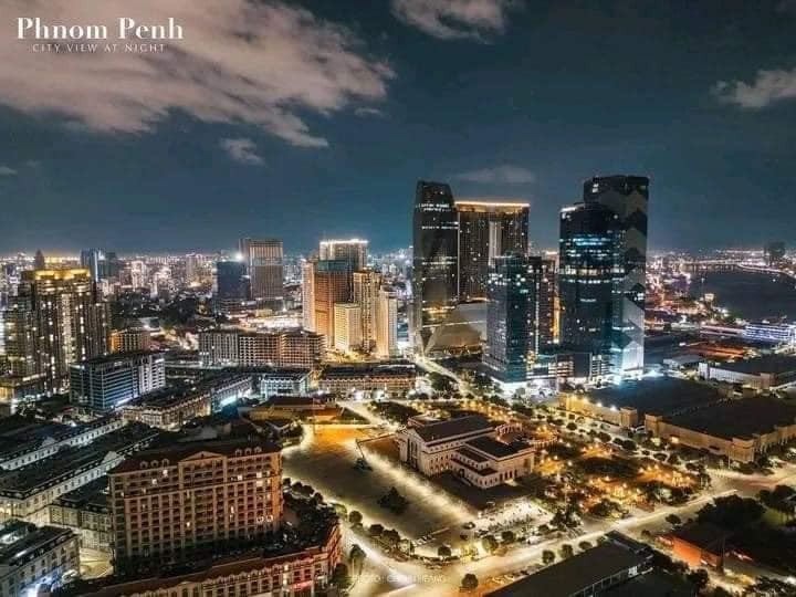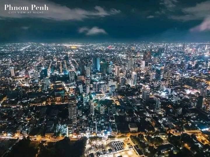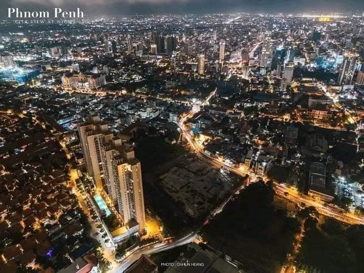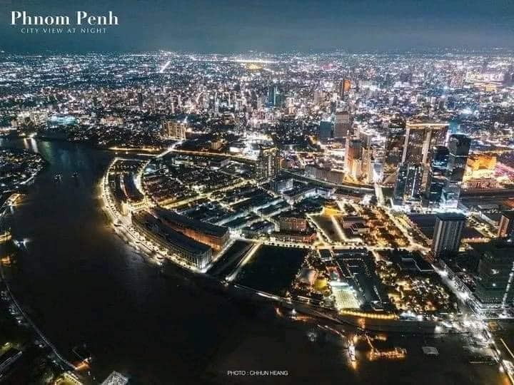 Night view of Phnom Penh, Cambodia, from the sky.