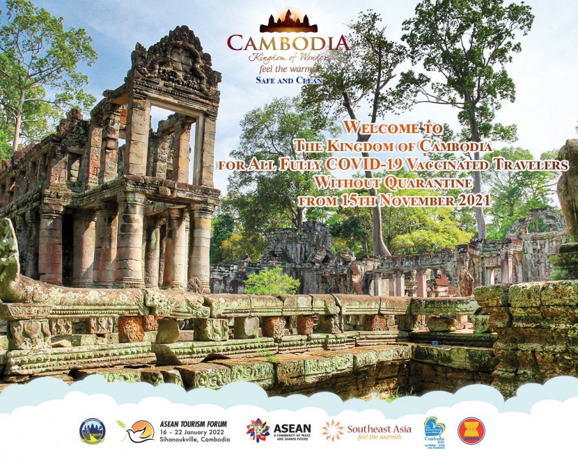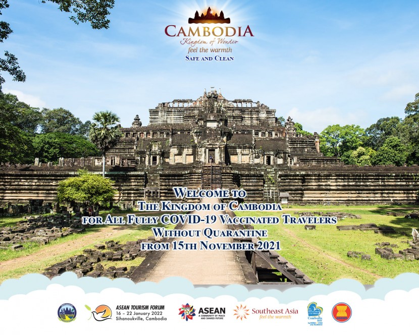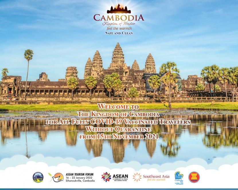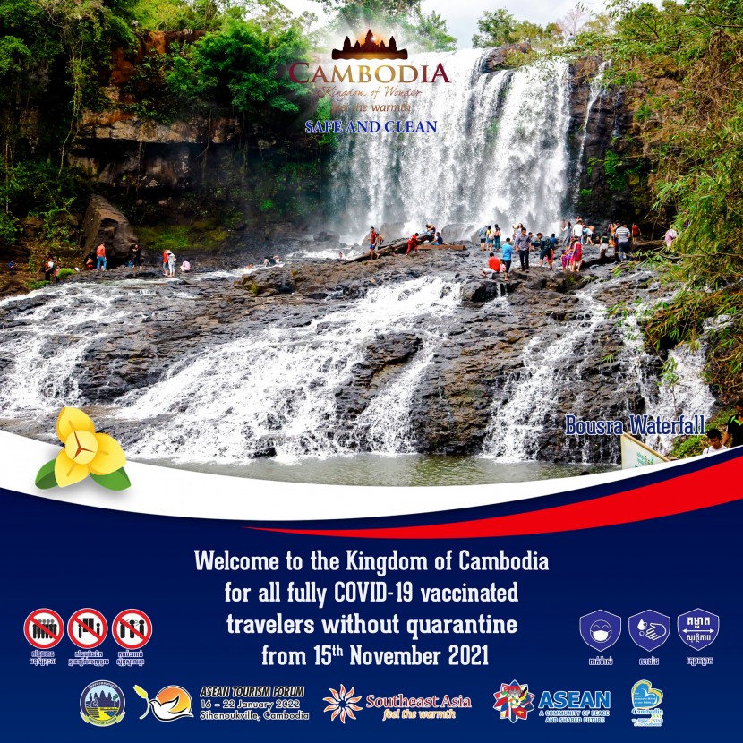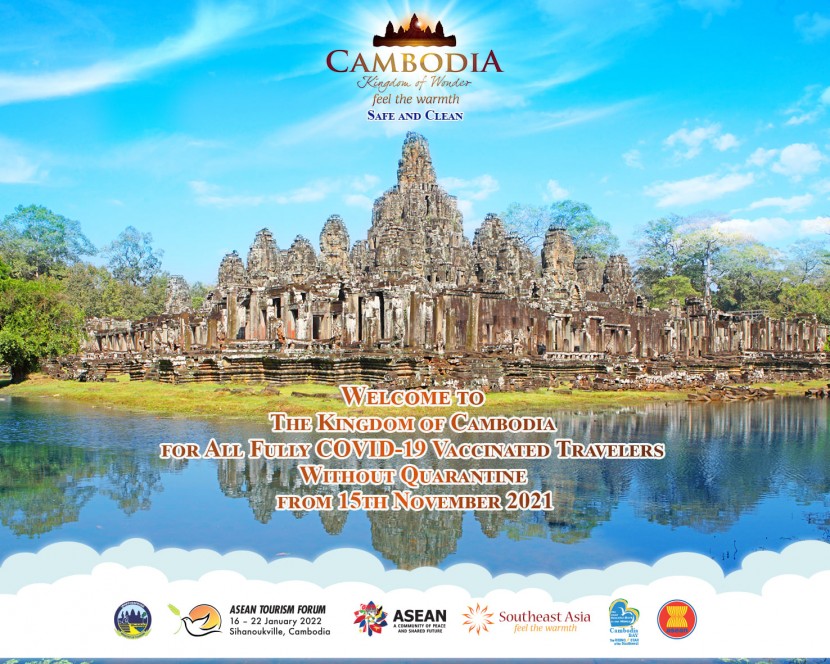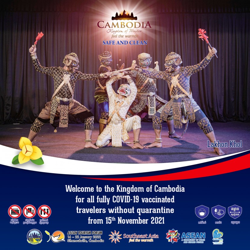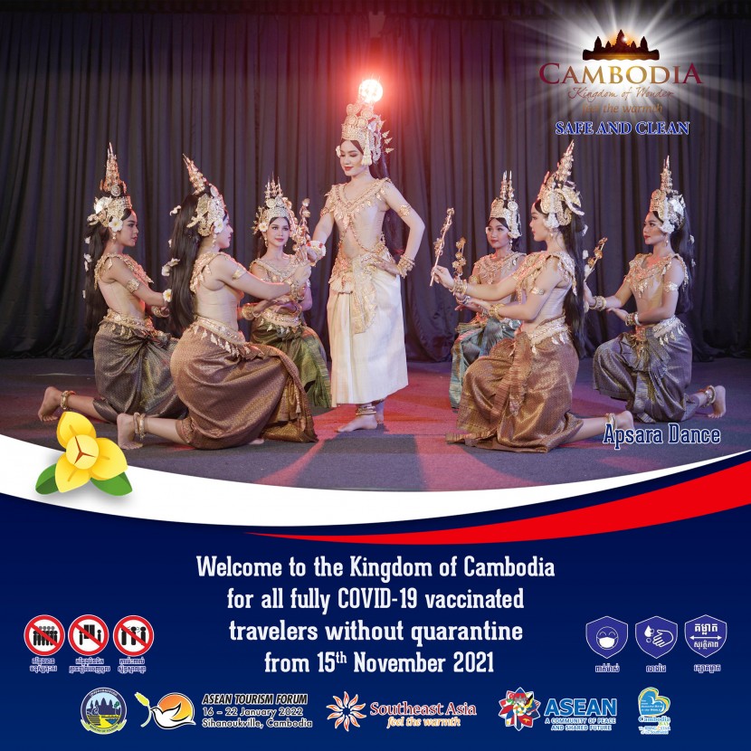 The Announcement of the Ministry of Tourism of the Kingdom Cambodia on the permission for fully vaccinated tourists and travellers entering the Kingdom of Cambodia without quarantine from 15th November 2021.
