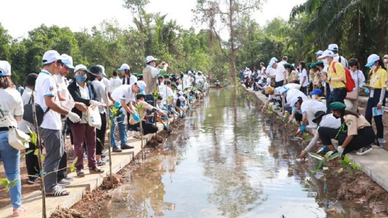 Officials from the Ministry of Tourism and Preah Sihanouk Provincial Administration led a delegation from the 16th World Congress of the World-Bays Club to plant 2,388 mangrove tree saplings on December 11 in Prey Nop district.