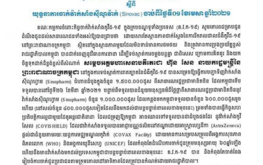 ក្រសួងទេសចរណ៍ អំពាវនាវចំពោះប្រតិបត្តិករទេសចរណ៍ចូលរួមគាំទ្រផែនការចាក់វ៉ាក់សាំងកូវីដ១៩